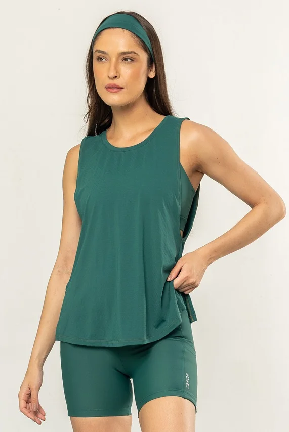 Regata com modelagem ampla, bem cavada nas laterais, e possui um detalhe de corte nas laterais para dar mais amplitude e movimento.